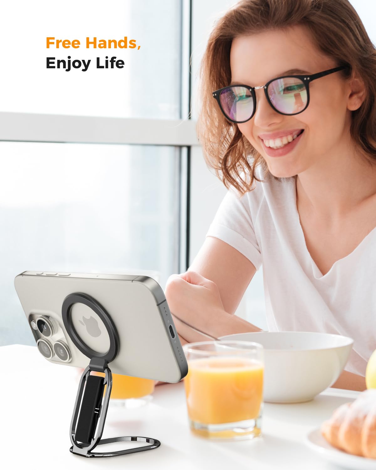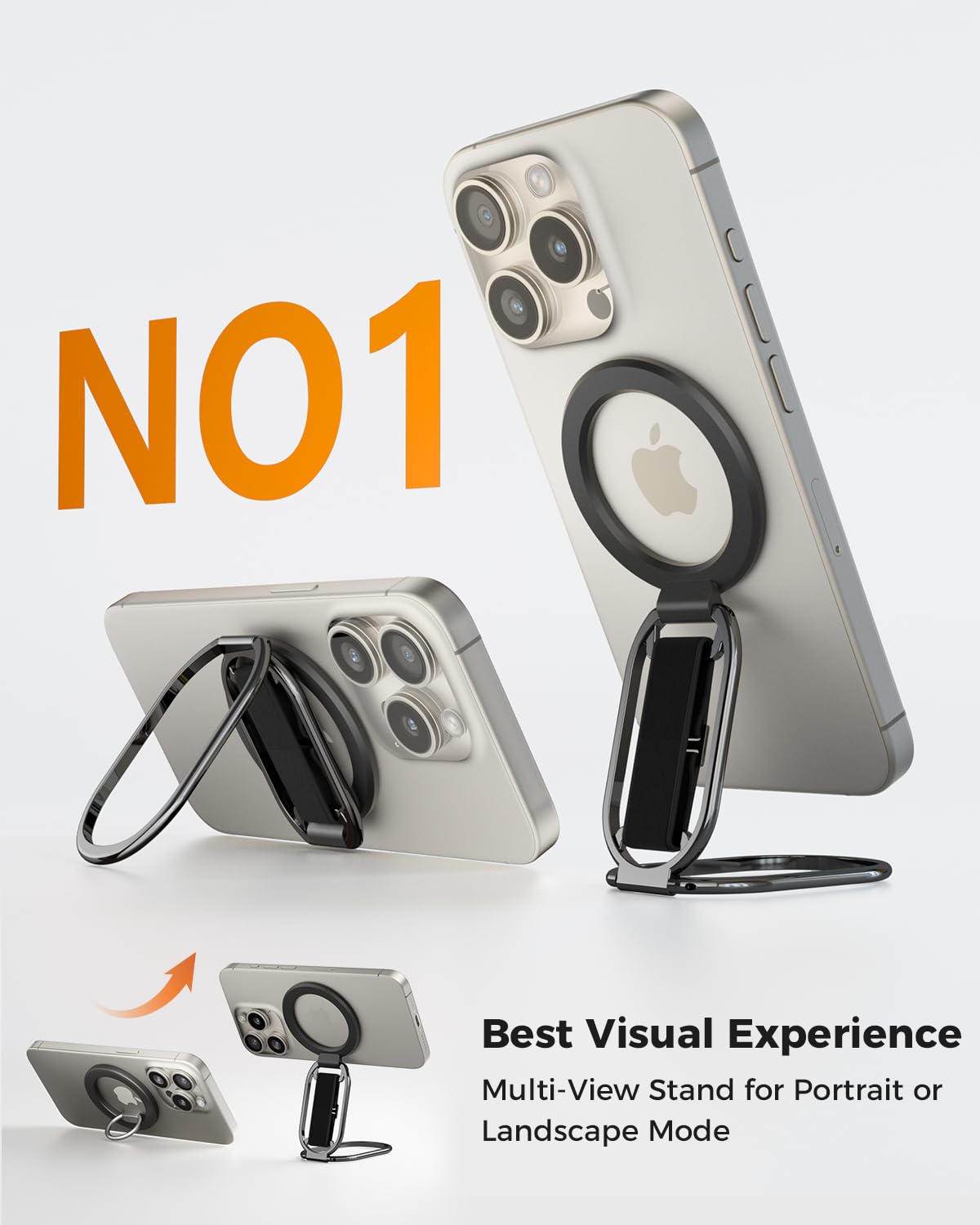 - [๐ ๐๐น๐๐ถ-๐ฉ๐ถ๐ฒ๐ ๐ฆ๐๐ฎ๐ป๐ฑ] The iphone magsafe kickstand features a multi-angle adjustable kickstand that rotates 360ยฐ, with dual joints flipping 280ยฐ and 360ยฐ, tested to withstand 50,000 folds without getting loose. It provides hands-free viewing in both portrait and landscape modes. Use it as a magnetic phone stand to prop up your phone for watching videos, movies, YouTube, TikTok, taking selfies, or FaceTime someone.