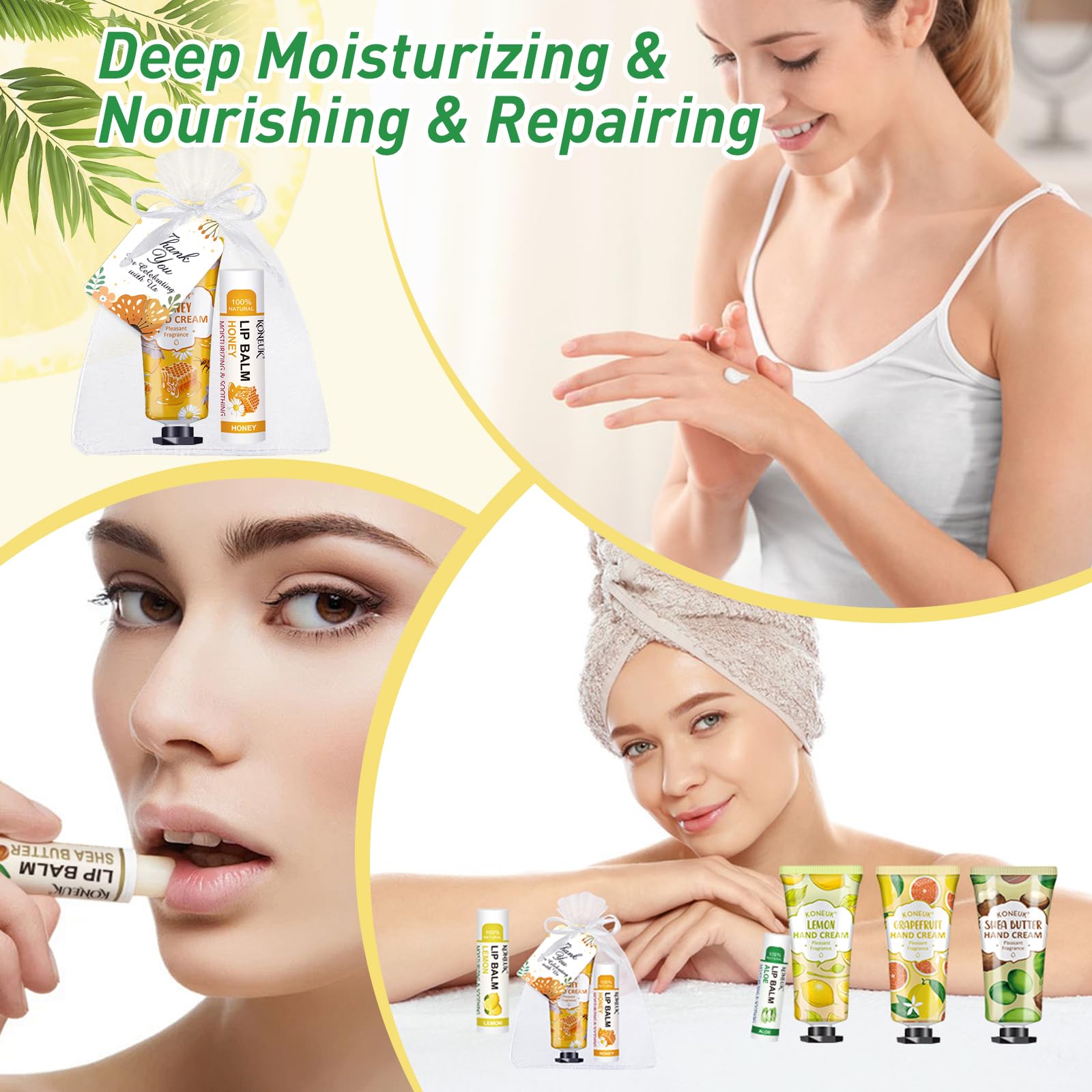 - 【Moisturizing and Nourishing】Hand cream and lip balm is rich in essence,coconut oil,shea butter and Vitamin E,hand cream and lip balm is very effective for dry cracked hands and lip,regularly applying these hand creams can keep your hands smooth and hydrated