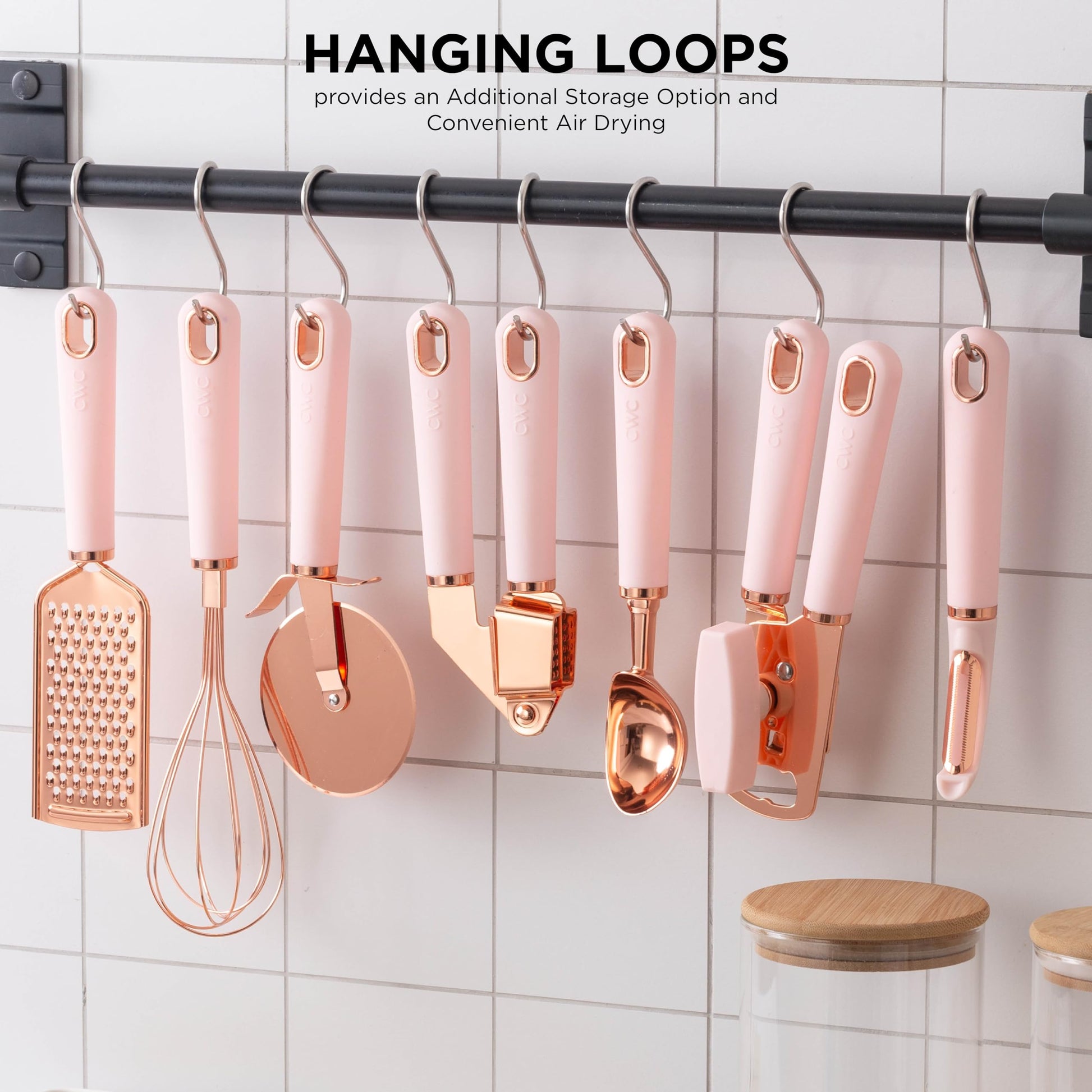- Outfit a new kitchen or update your existing collection with this must have trendy and deluxe, COOK with COLOR copper kitchen gadget utensil set that will add a unified modern look to your kitchen decor.
