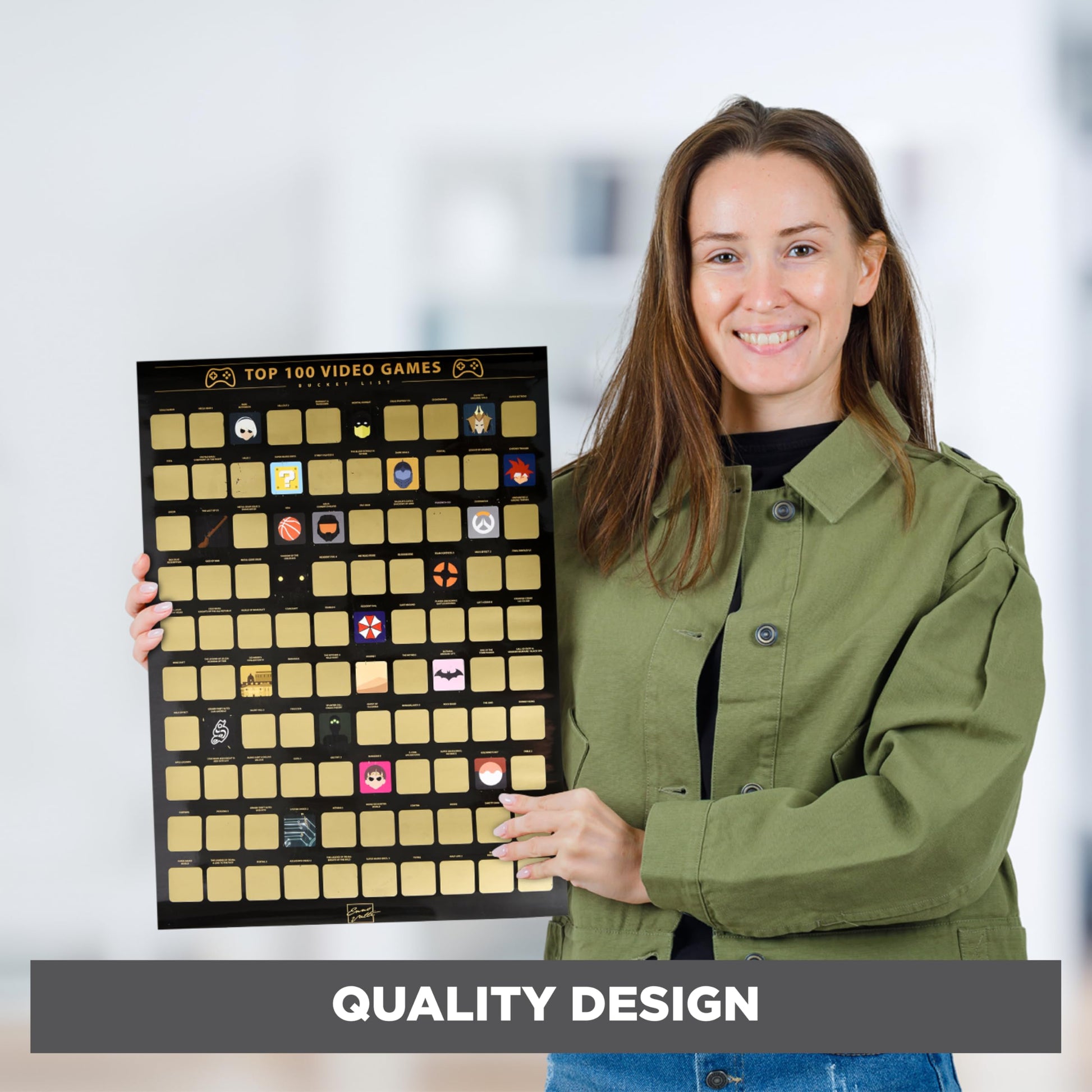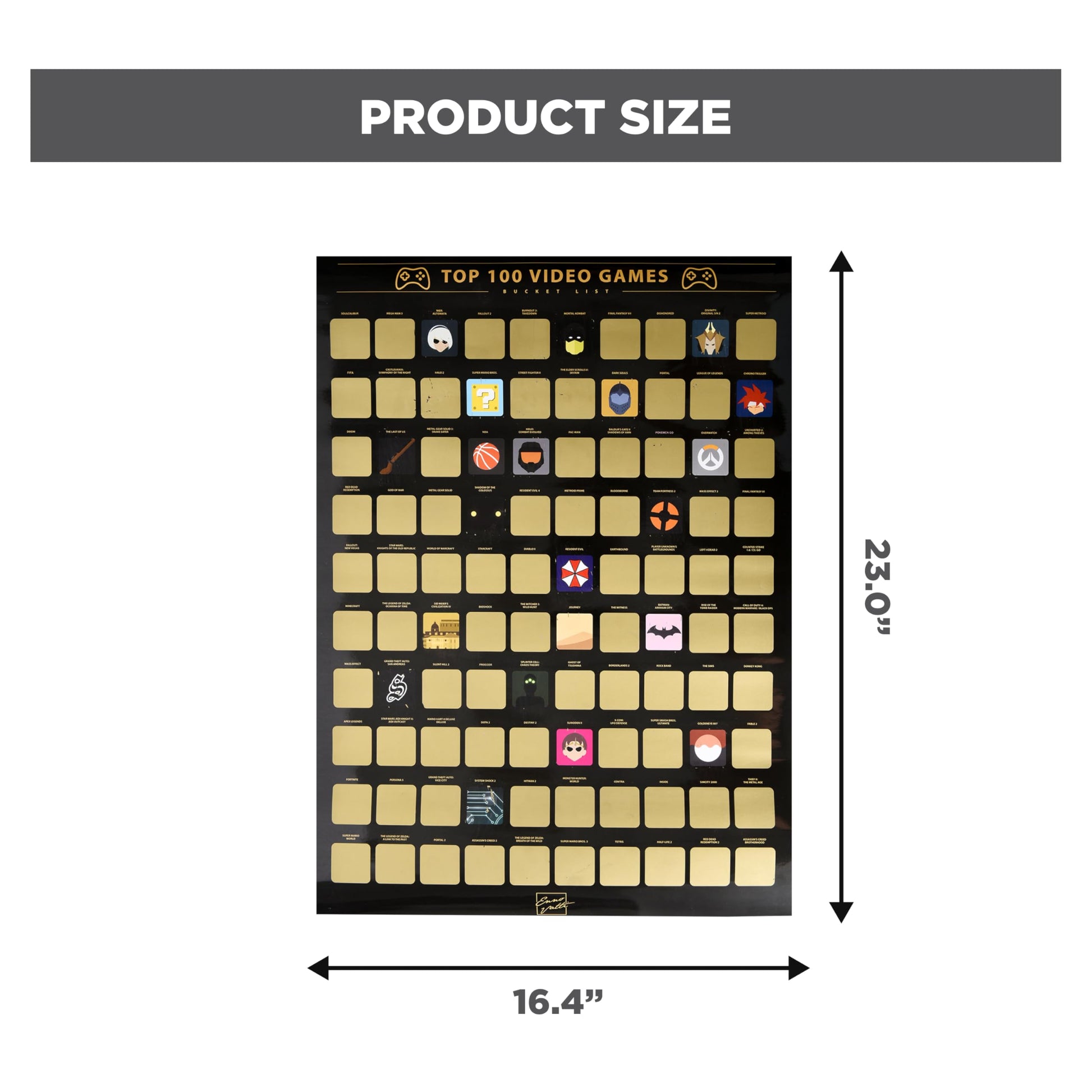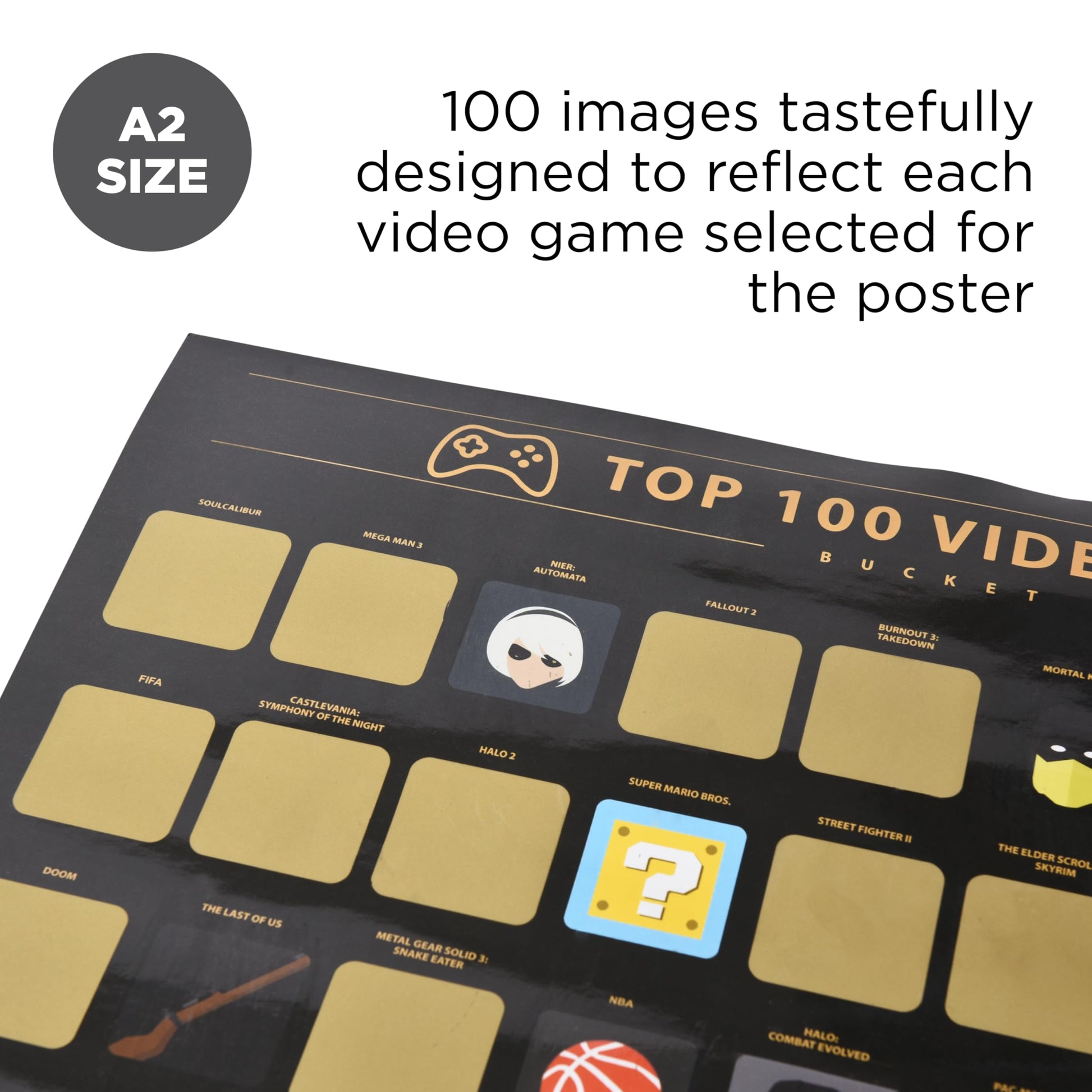 - TOP 100 VIDEO GAMES SCRATCH OFF POSTER: Celebrate your love for gaming with our scratch-off poster showcasing 100 iconic video games. Kids and adults alike will enjoy this interactive bucket list