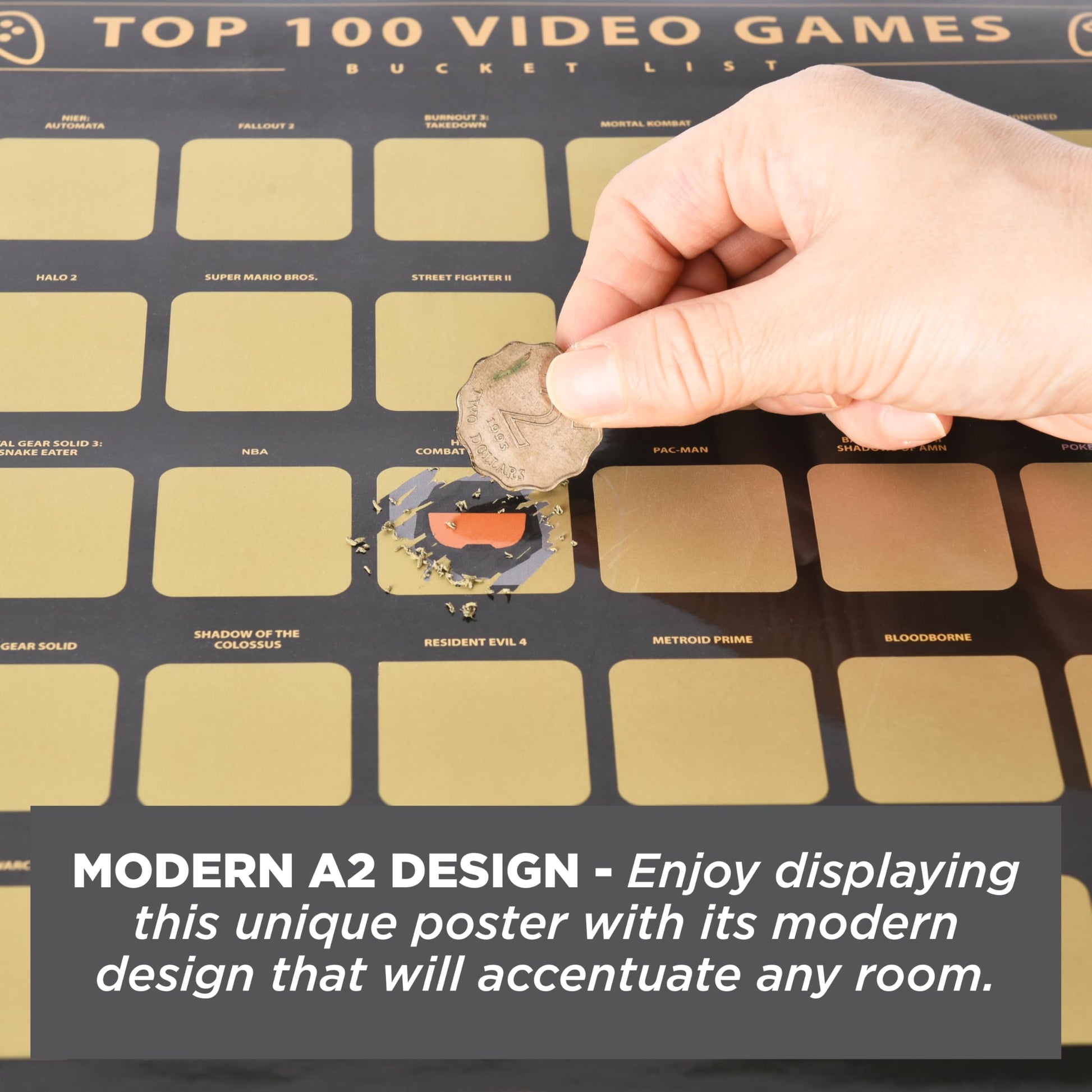 - UNIQUE SCRATCH OFF POSTER FOR BUCKET LIST ENTHUSIASTS: Ideal for gaming fans and collectors, this modern, well-illustrated scratch-off poster provides an engaging way to track your gaming milestones.