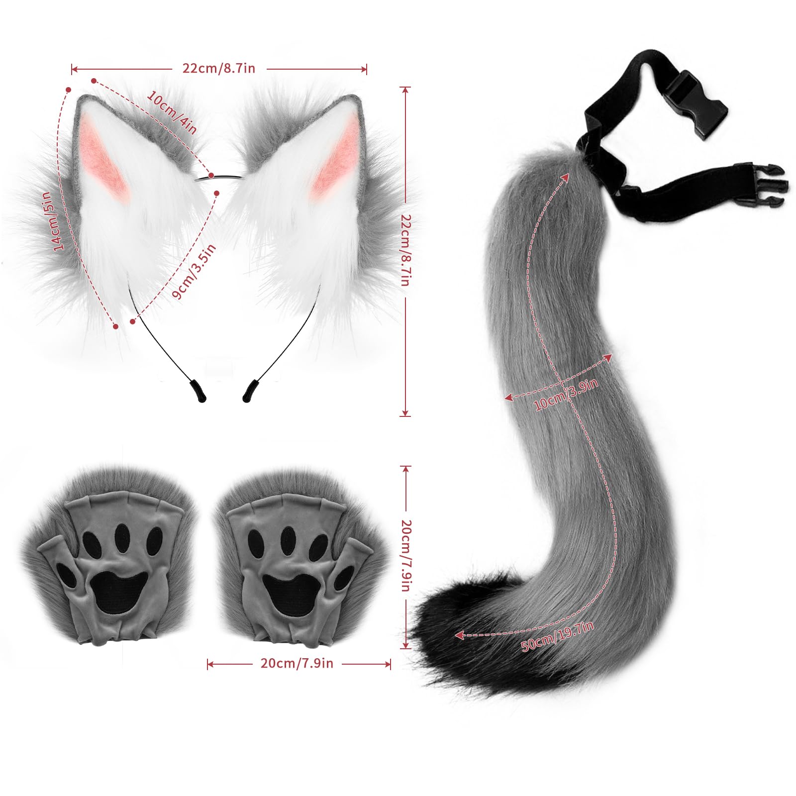 Details: The package includes: 1* ear headband, 1* fluffy tail, and a pair of animal gloves