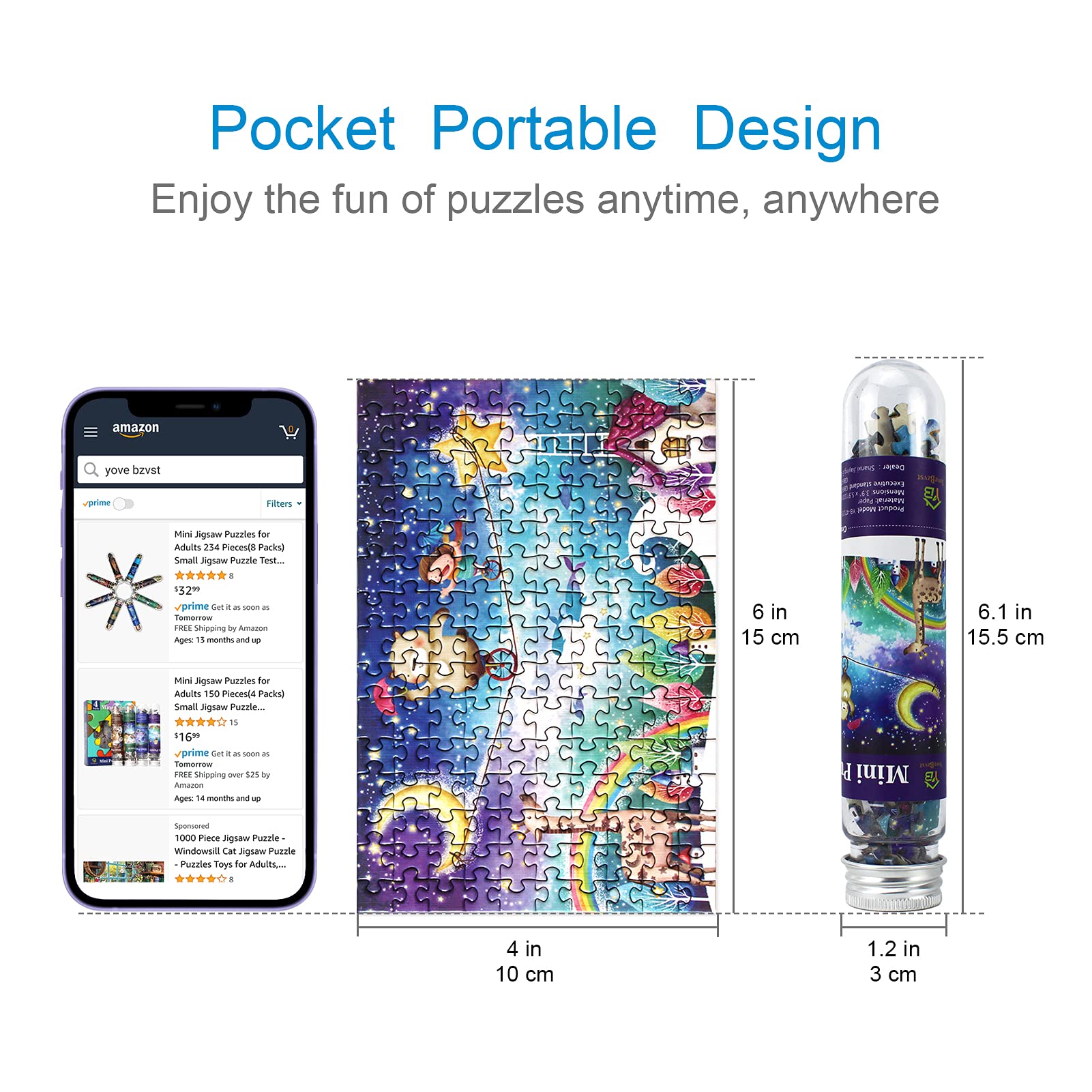 - Ideal travel companion and gift:This puzzles for adults are stored in a sturdy plastic test tube. Small size is easy to carry, and you can do relaxing small jigsaw Puzzle in the poffice or classroom during lunch break. You can also complete them on a train or plane while traveling.And it can also be used as a toy or as a gift (Birthday, Graduation, Easter, Thanksgiving, Valentine's day, Halloween, Christmas, New Year day and other events etc.)