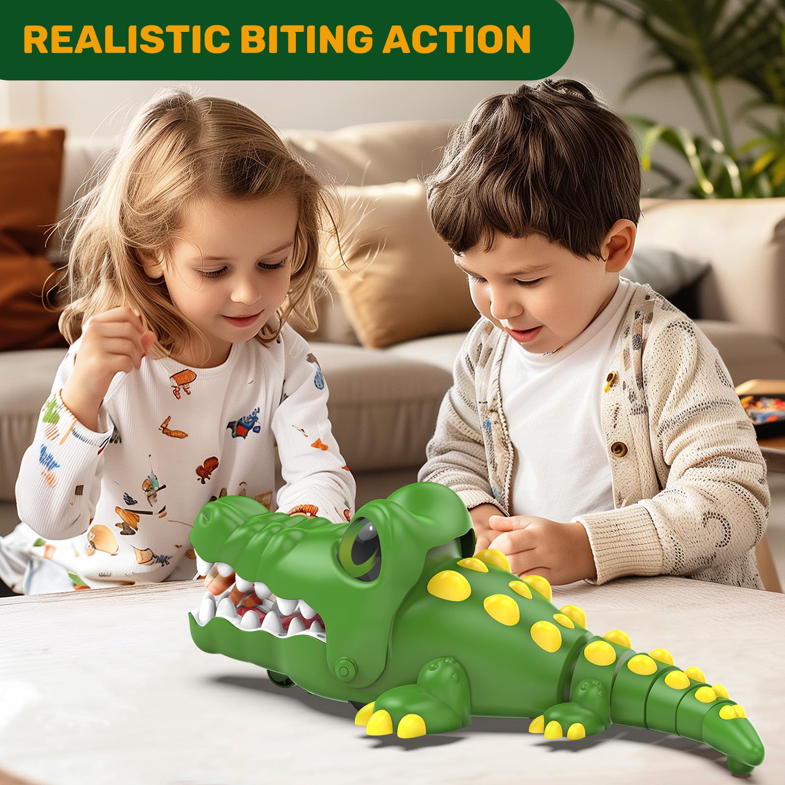 - The Ultimate Interactive Fun for Kids and Adults: Bring a sense of adventure to playtime with the 2.4GHz Remote Control Crocodile Toy! Our newly upgraded 2025 model is designed to provide endless hours of entertainment for children and adults alike. Modeled after a real-life crocodile, this toy features realistic jaw-snapping motions and fun sound effects that can be switched on or off for different play styles