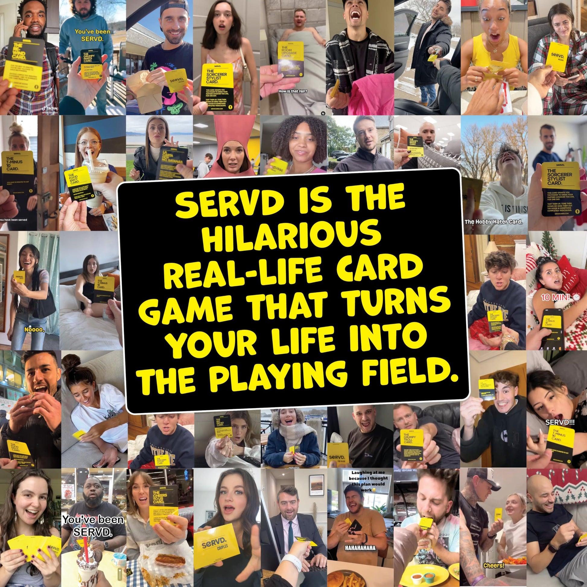 - THE GAME: SERVD is about spontaneity and playing cards when your opponent least expects it. From giving you the power to drag your partner along to your favourite recreational activity to stealing their meal should it come out looking tastier than yours. SERVD will either have you running for the hills or laughing until you cry.