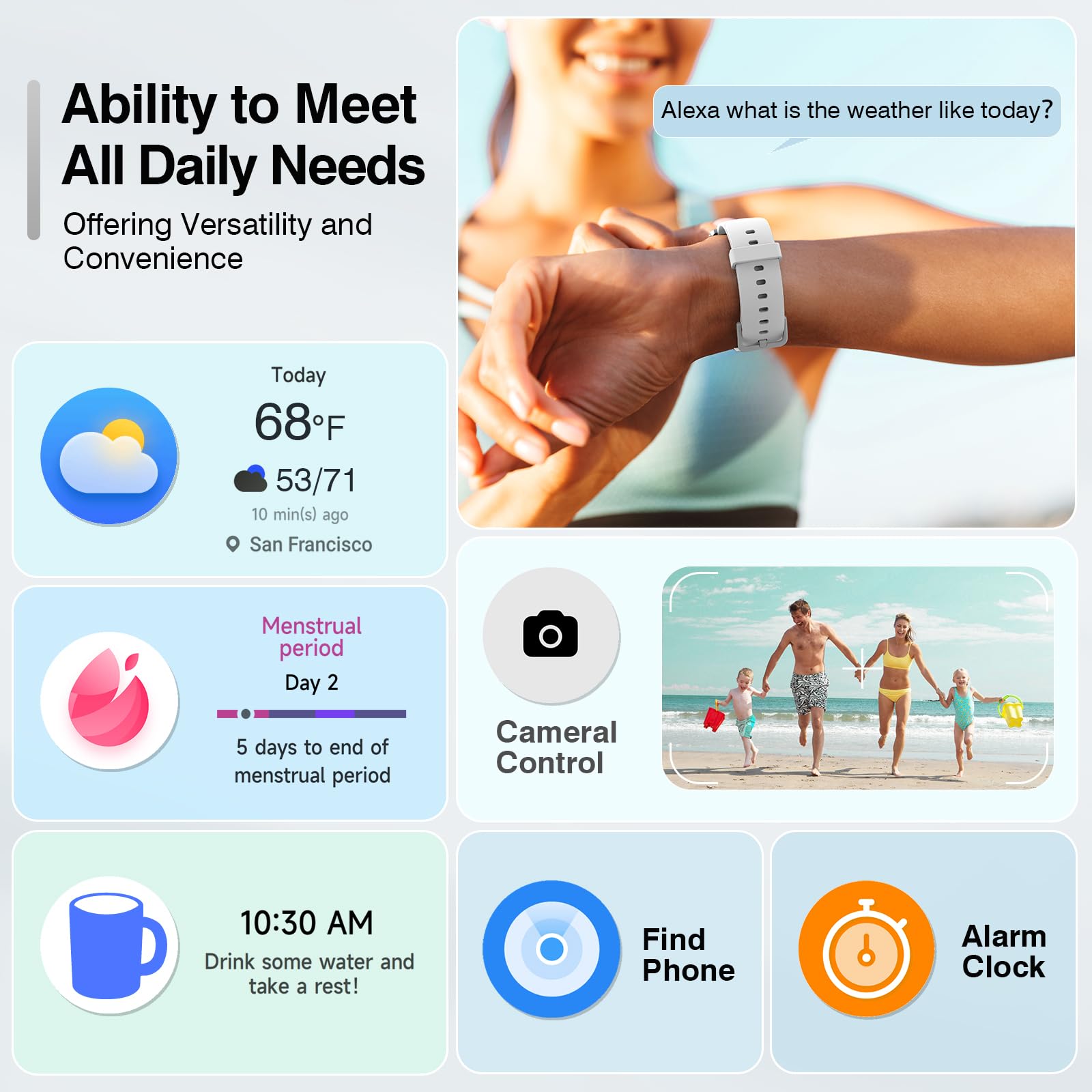 - 【Call Receiving/Dialing & Alexa Built-in 】:Smart watches for men women an advanced single-chip processor and a sensitive microphone, allowing you to make and receive calls without a SIM card.With Bluetooth 5.3, it offers faster and more stable connectivity. It also syncs contacts and stores call logs.Smart watch built with an AI assistant, enables smooth voice commands and hands-free calls